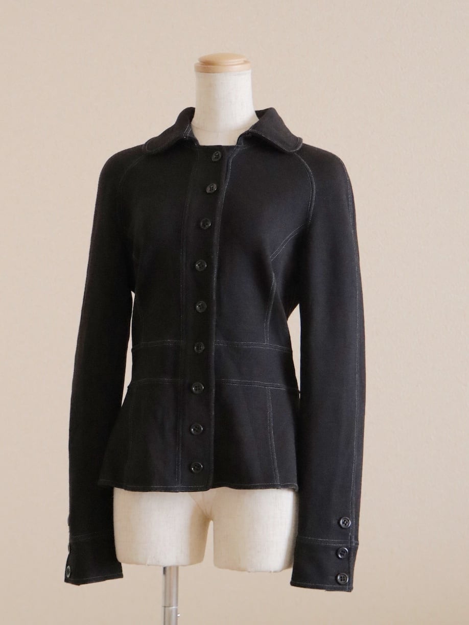 ●made in ITALY black color jersey knitted jacket top.