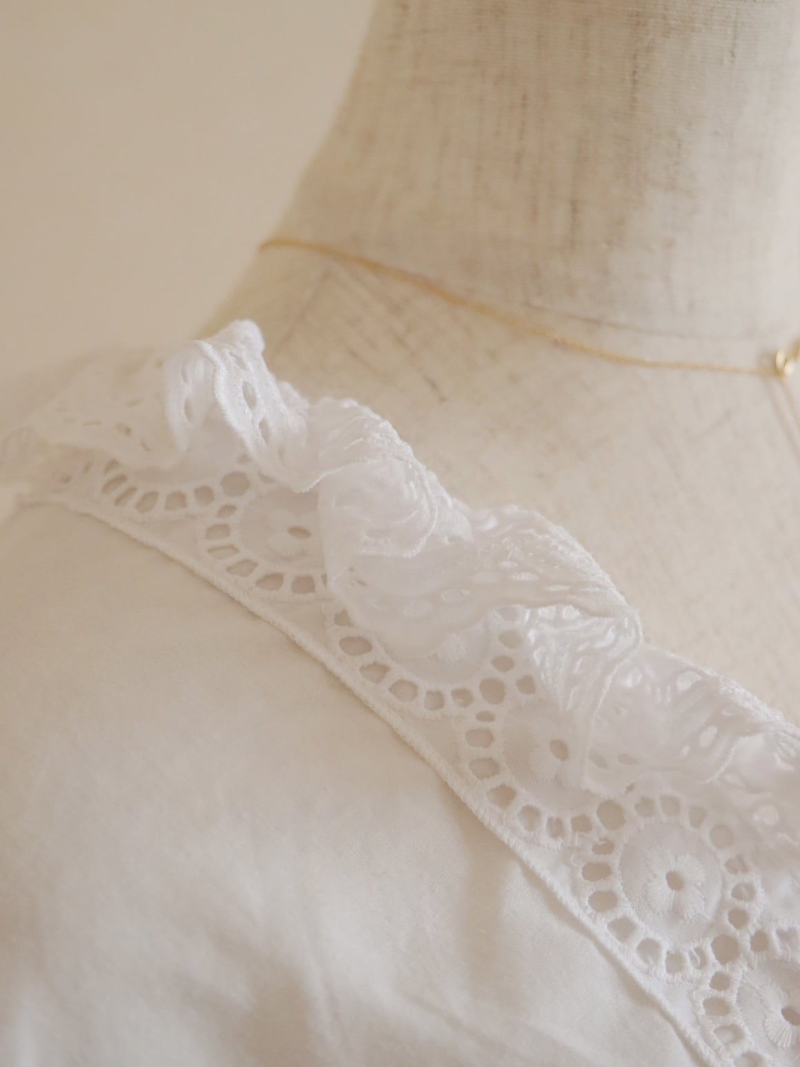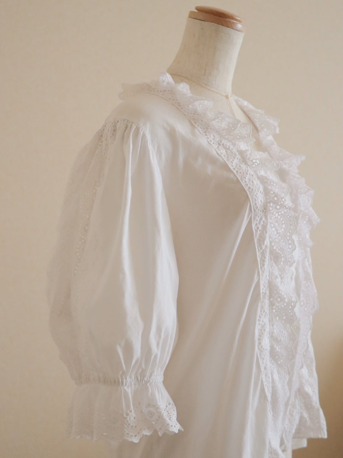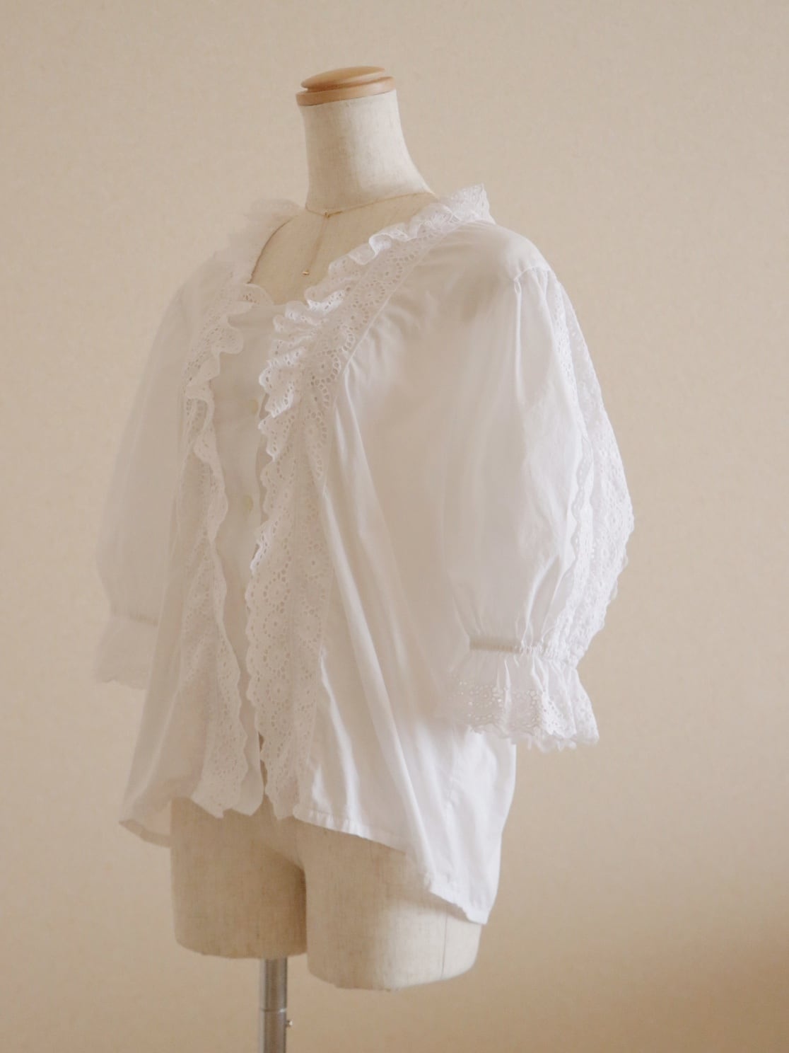 ●made in AUSTRIA lace embroidery frill design puff sleeve cotton blouse.