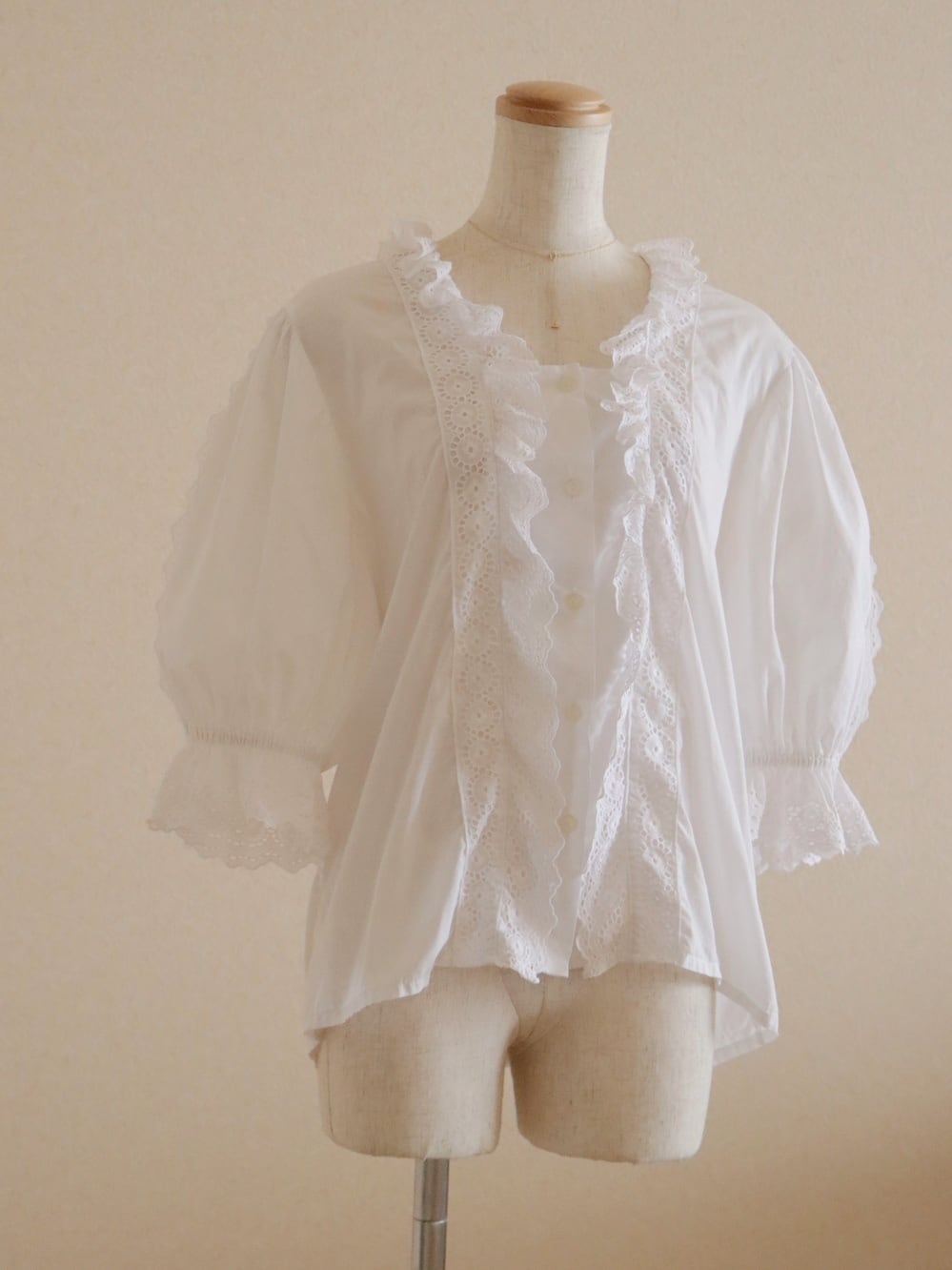 ●made in AUSTRIA lace embroidery frill design puff sleeve cotton blouse