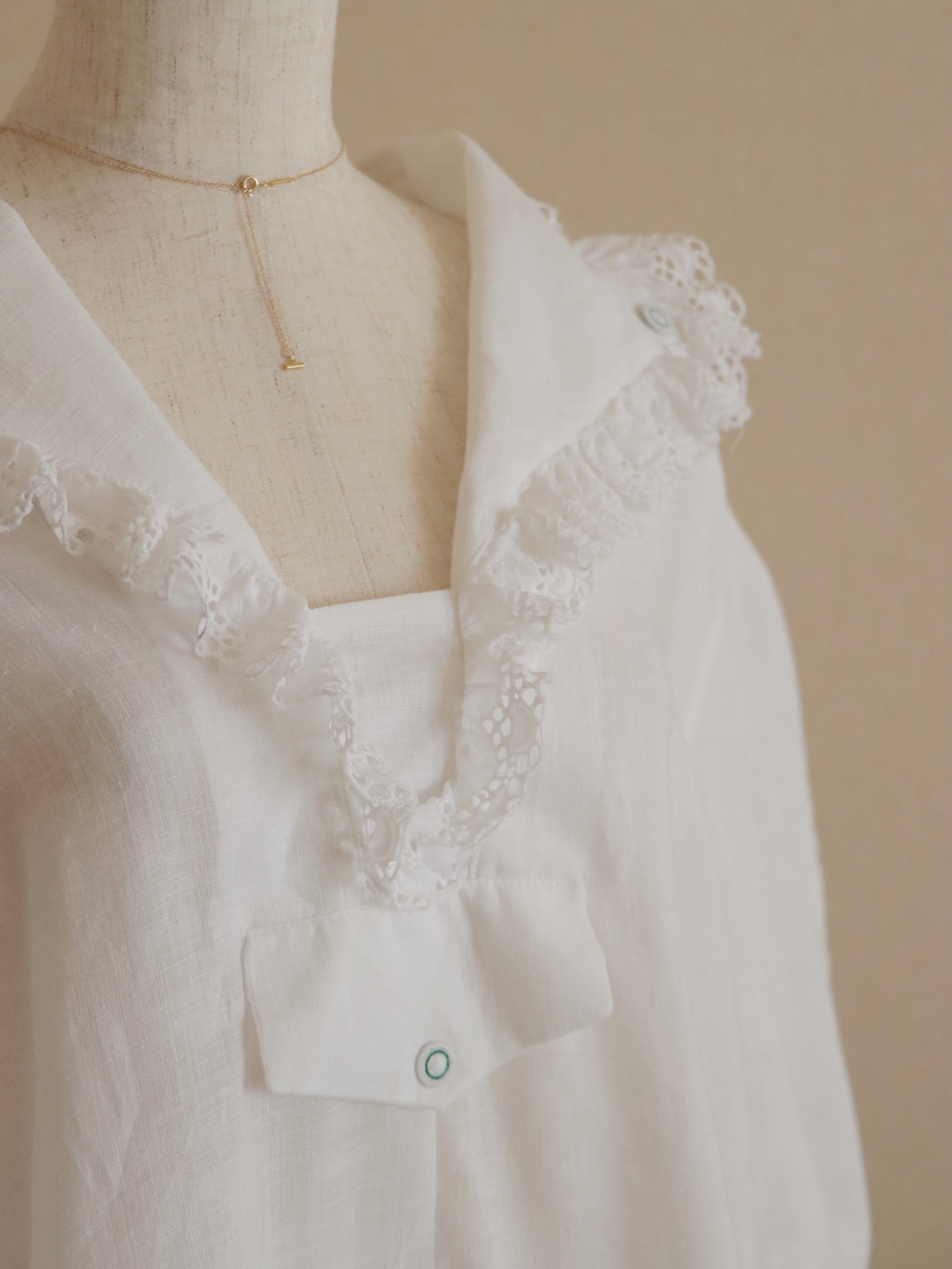 こちらは大きめの襟が目を惹くオーストリア製ブラウス。
