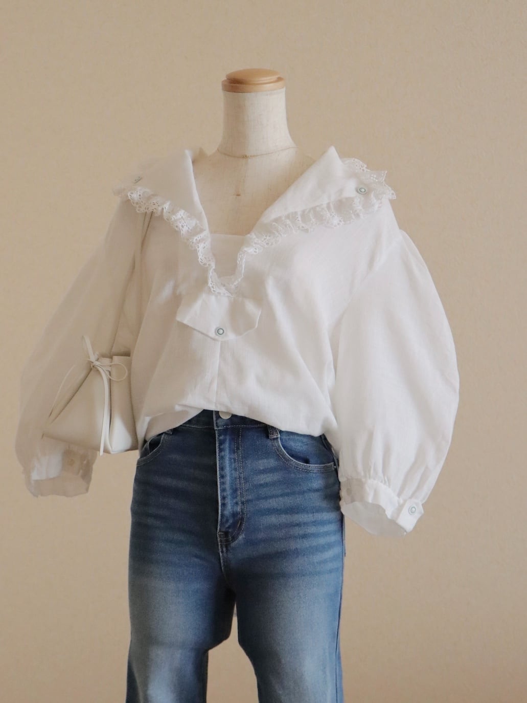 ふんわりとした立体的なお袖や刺繍ボタンがアクセントになった、これからの季節にお勧めのアイテムです。