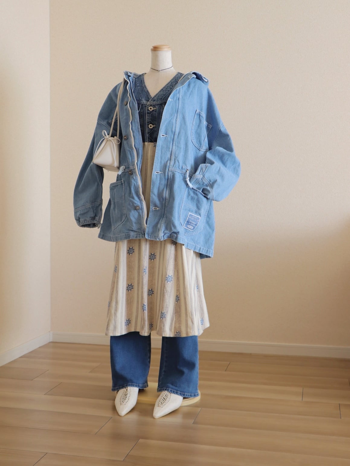 ●90s oversize blue denim design hoodie jacket