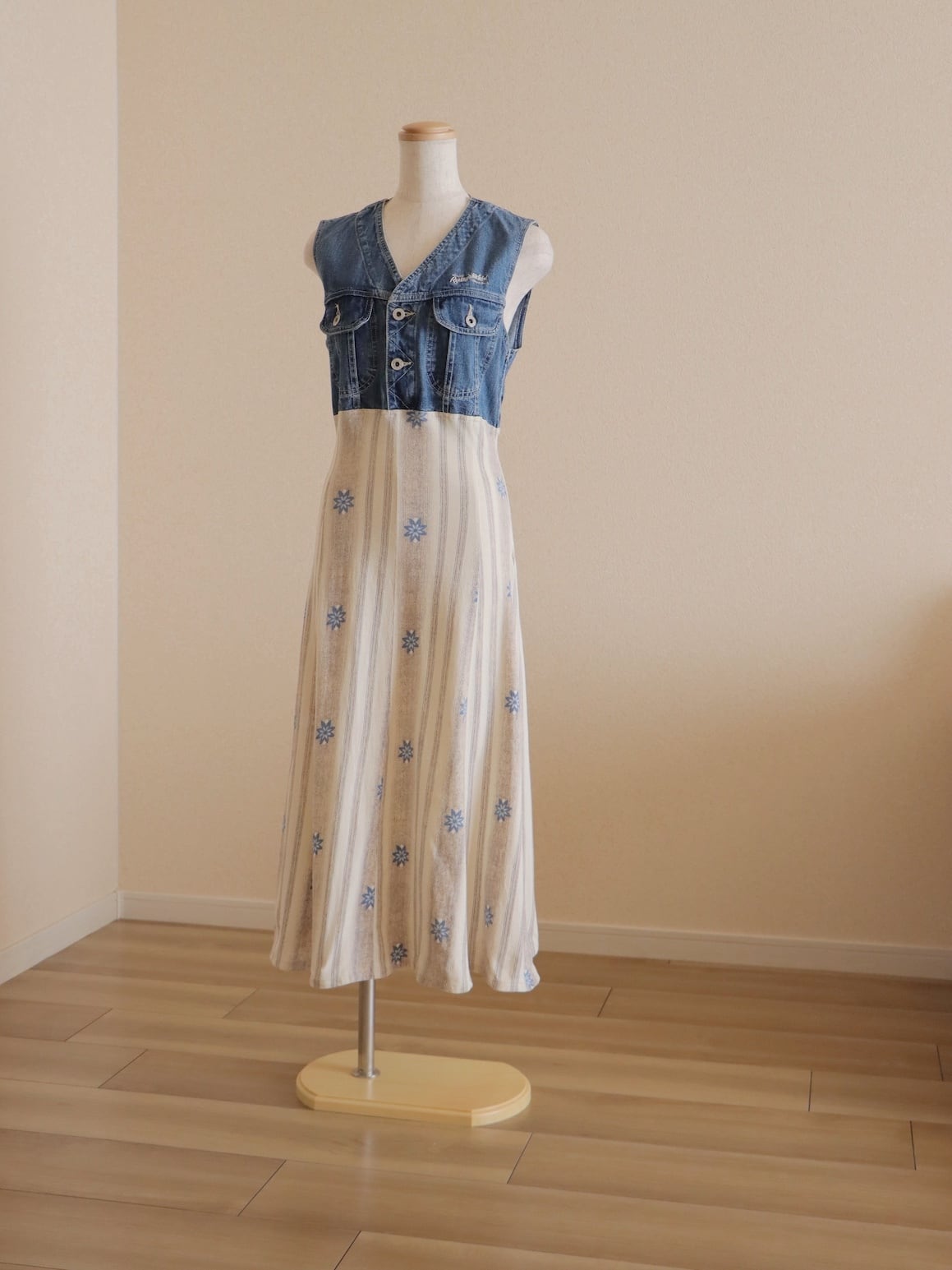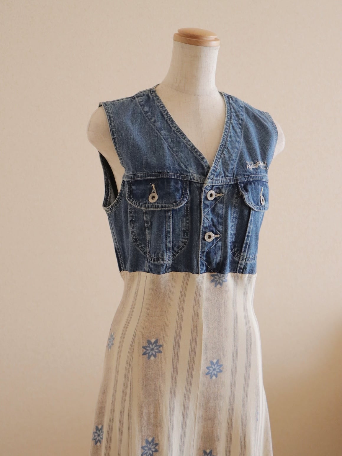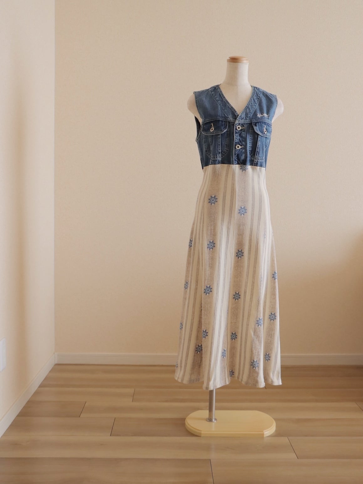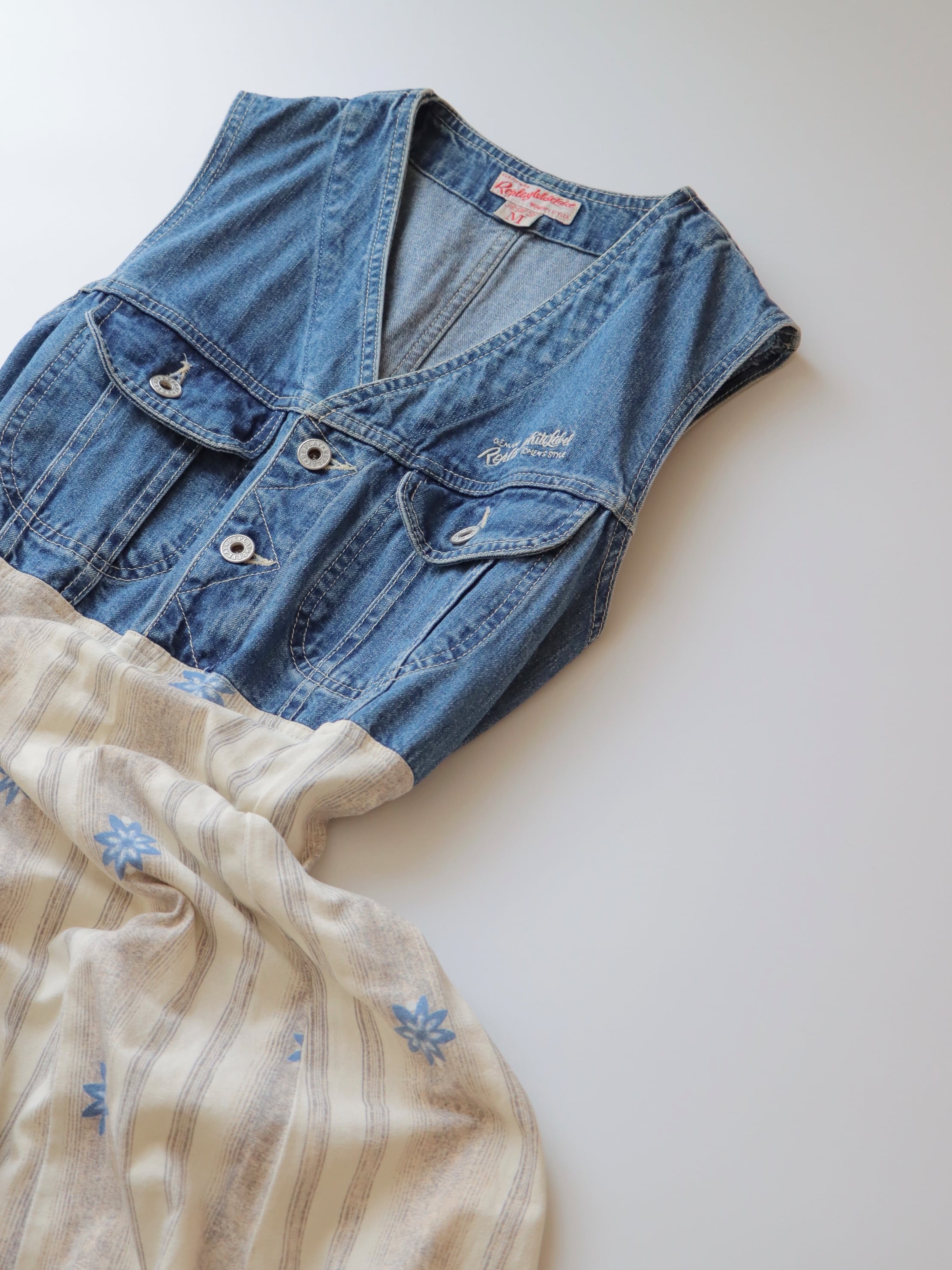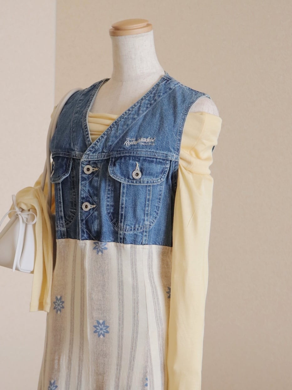 こちらは、デニムと柔らかなカットソー生地をドッキングしたデザインです。
