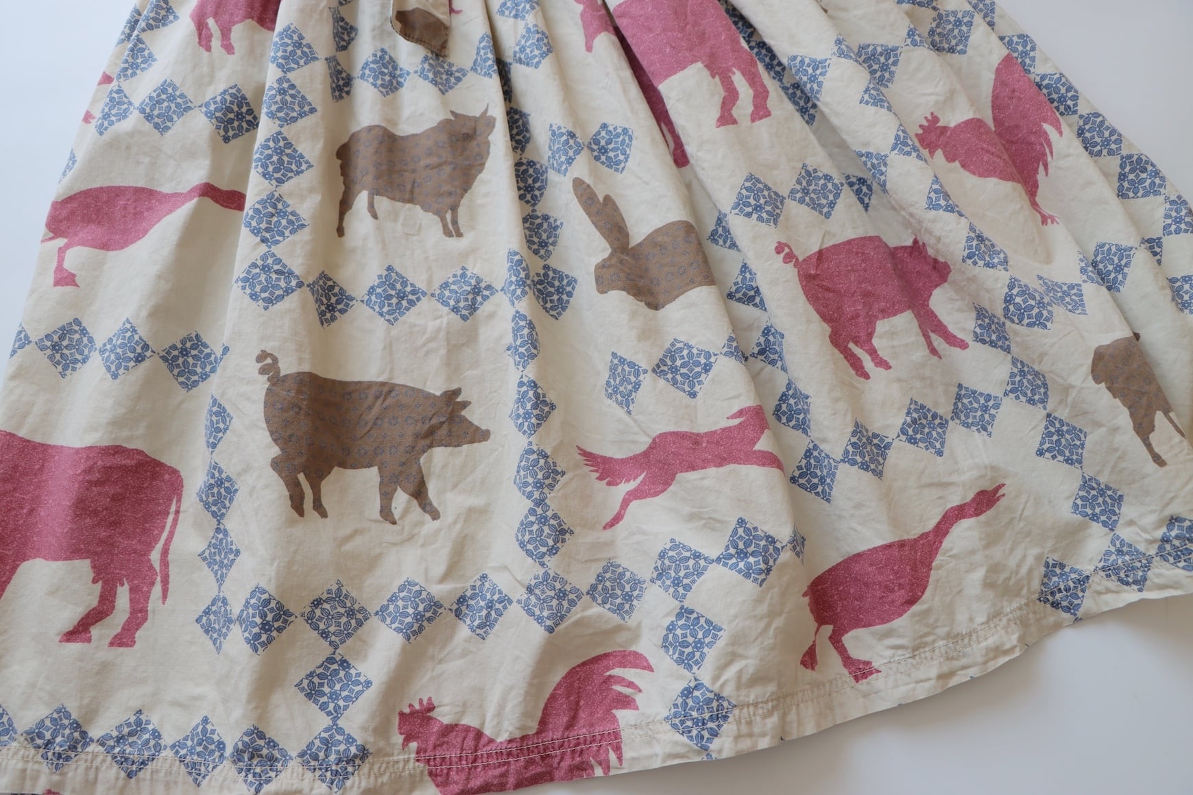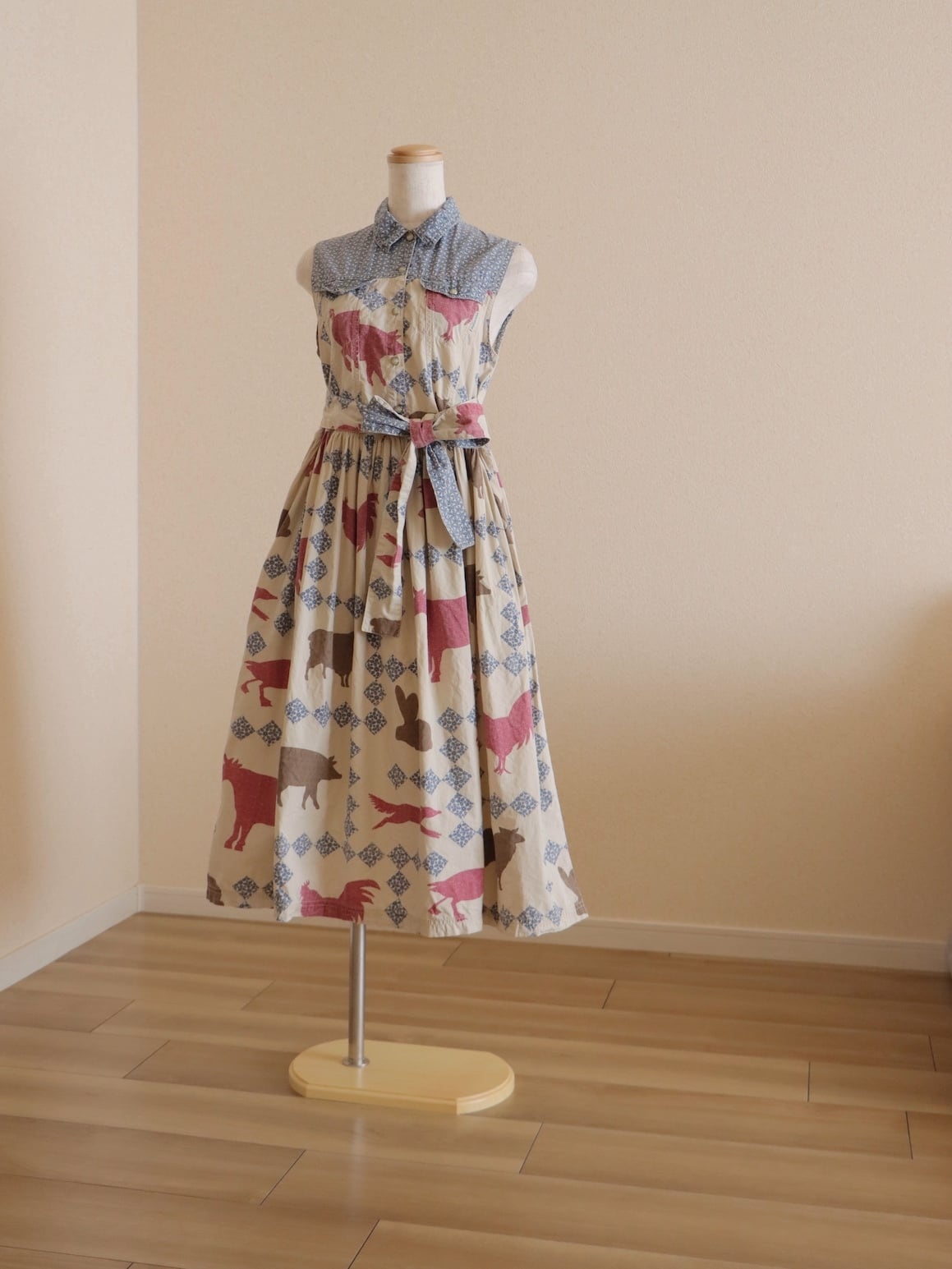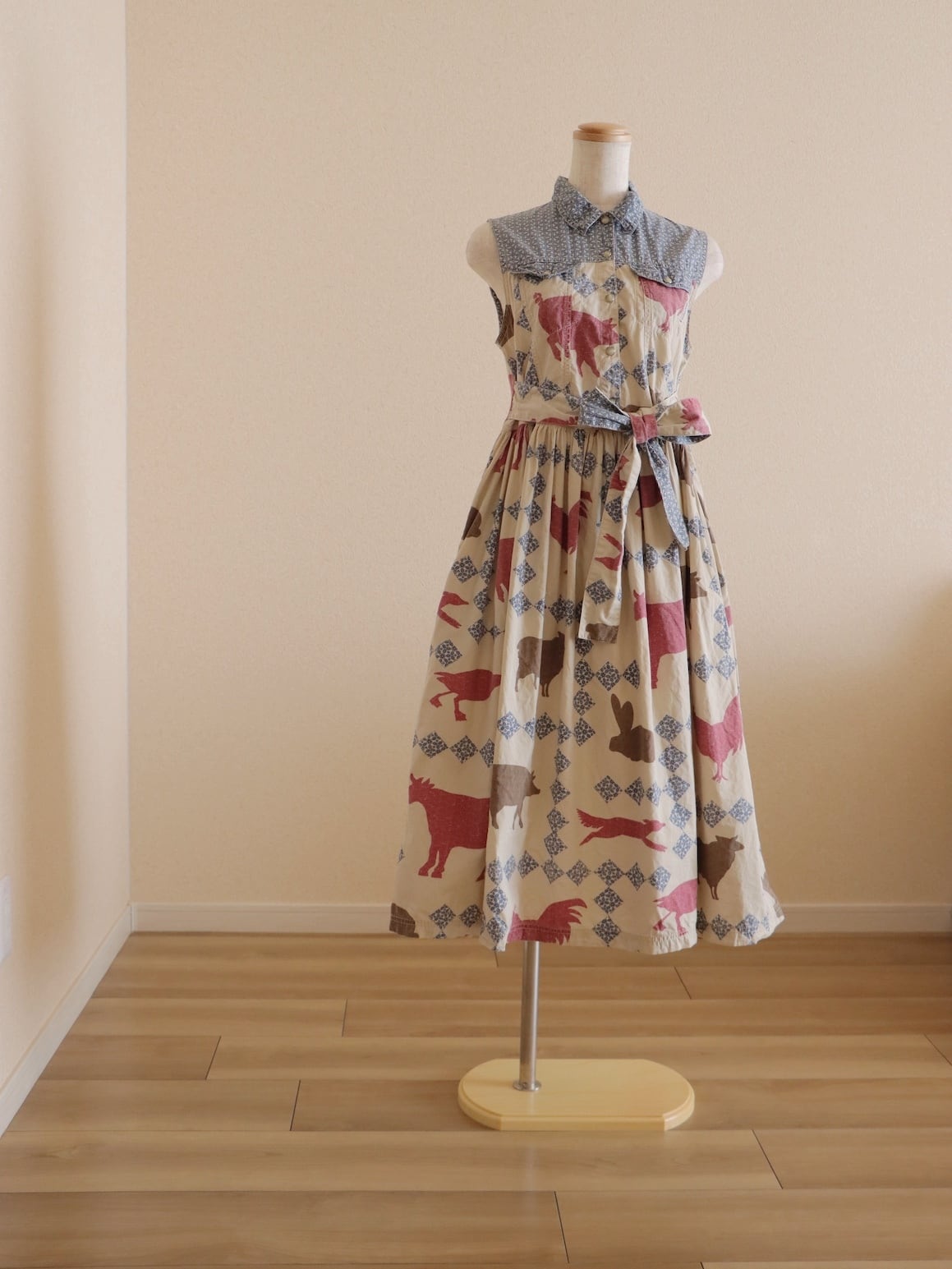 遊び心溢れる動物柄が目を惹く、ナチュラルコットン素材のデザインワンピース。