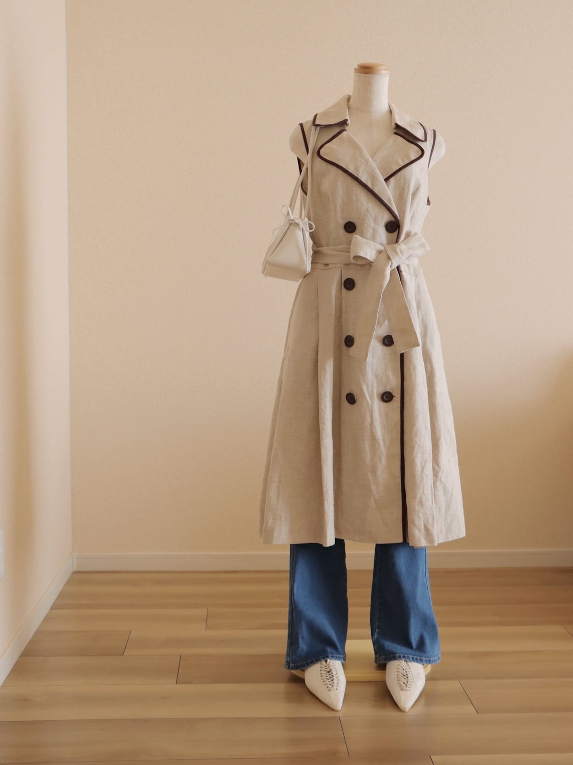 ●90-00s Talbots trench piping detail linen 100% sleeveless dress