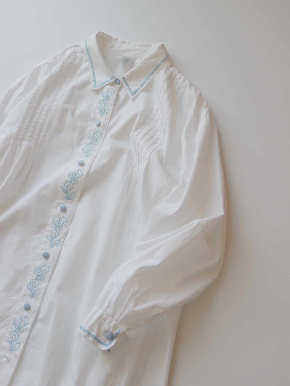 ●flower embroidery design blue & white color long shirt dress.