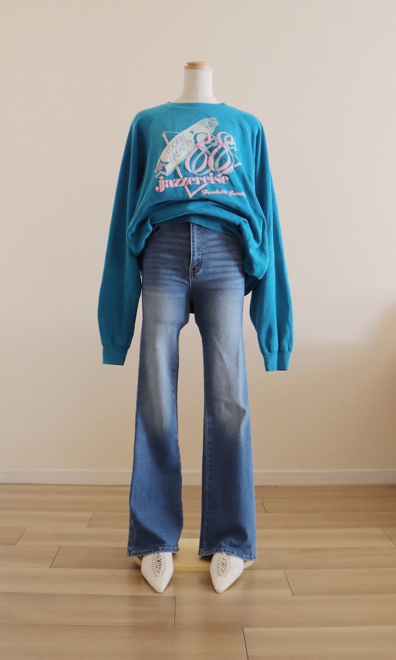 cotton50/acrylic50の柔らかな風合いで、この年代ならではのクタっと感やルーズさが可愛い1着です。