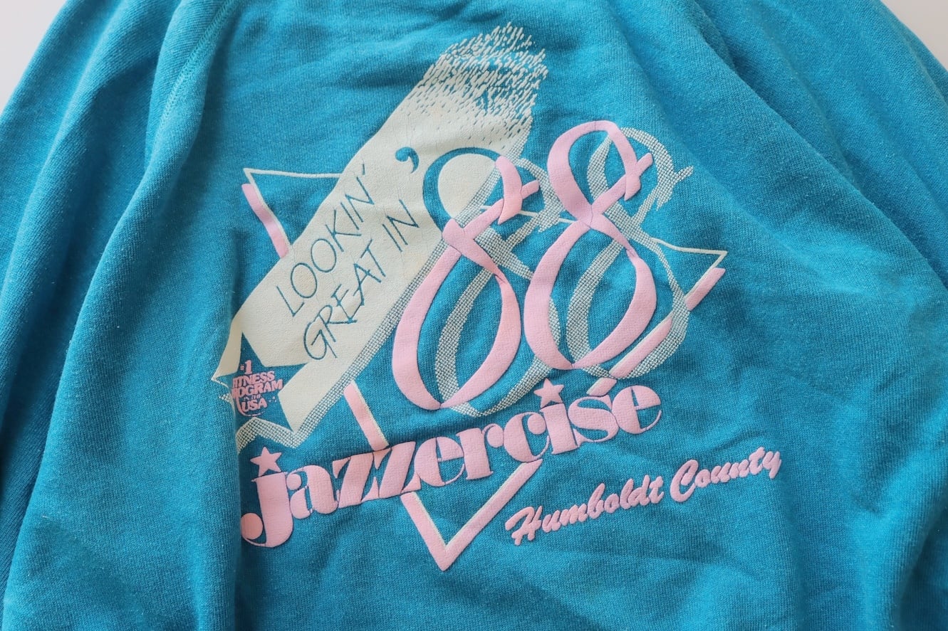 発色の良い綺麗なブルーにネオンのようなパステルピンクのロゴが、80年代の雰囲気を出しています。
