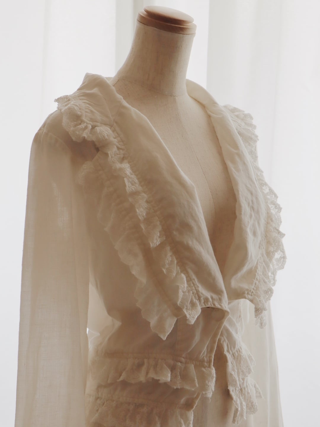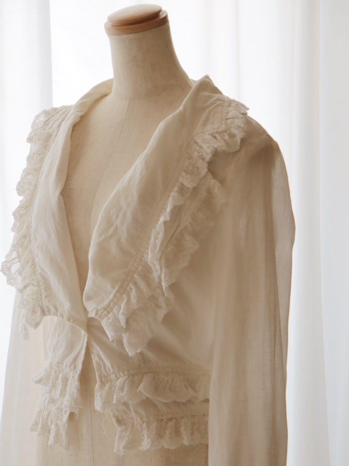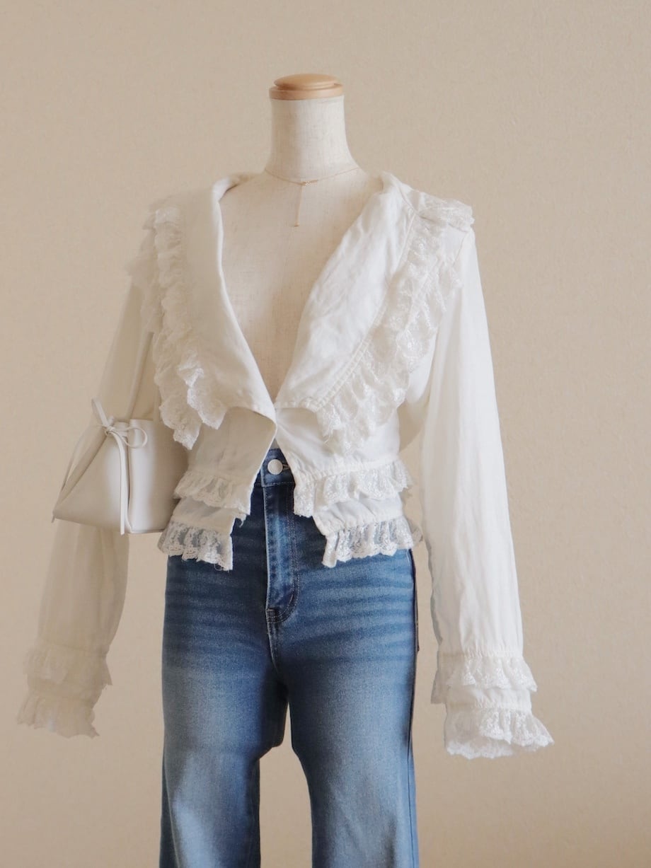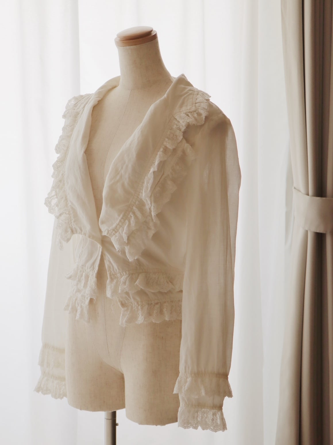 繊細なレースを贅沢に施したナチュラルリネンジャケット。