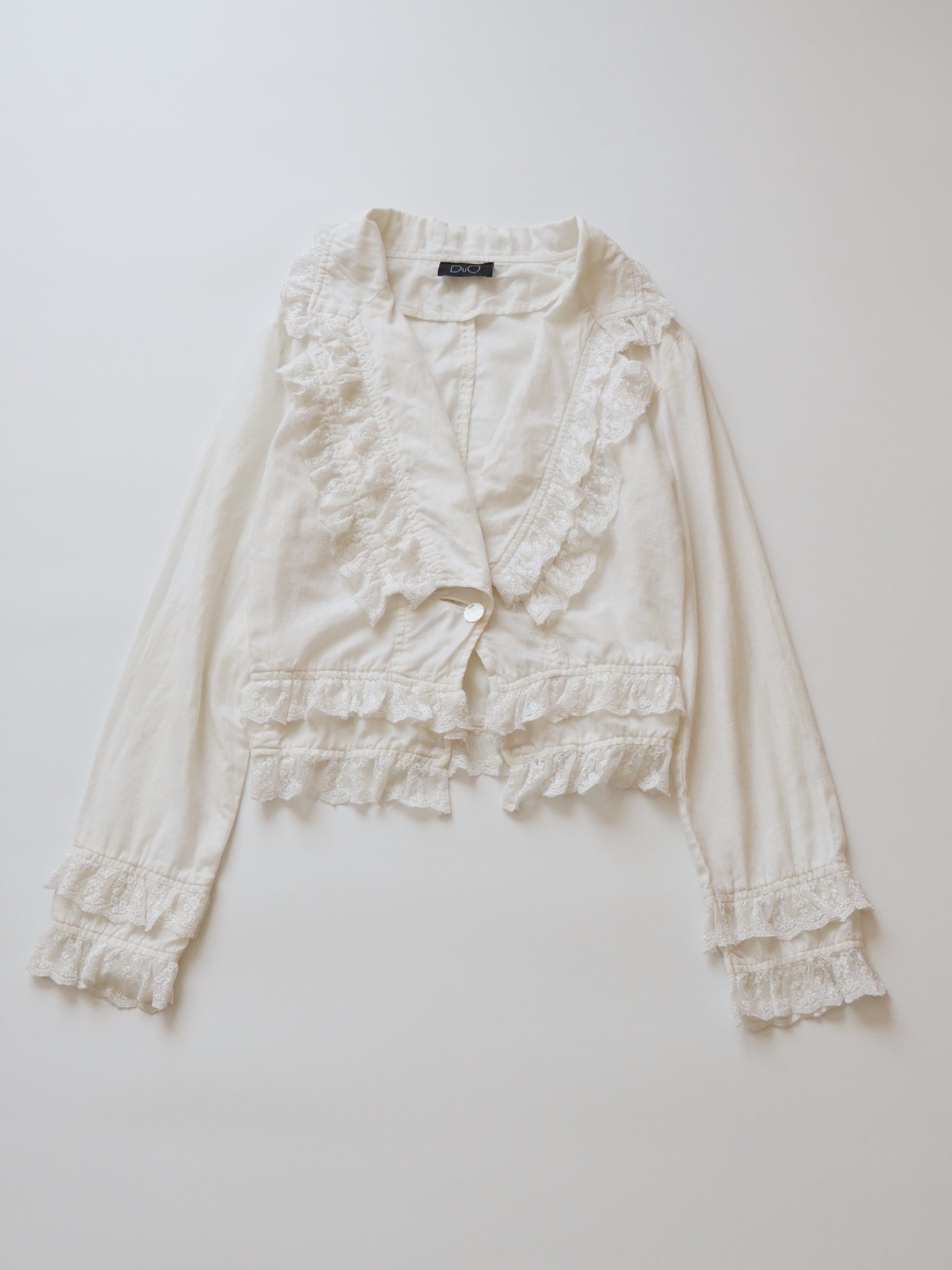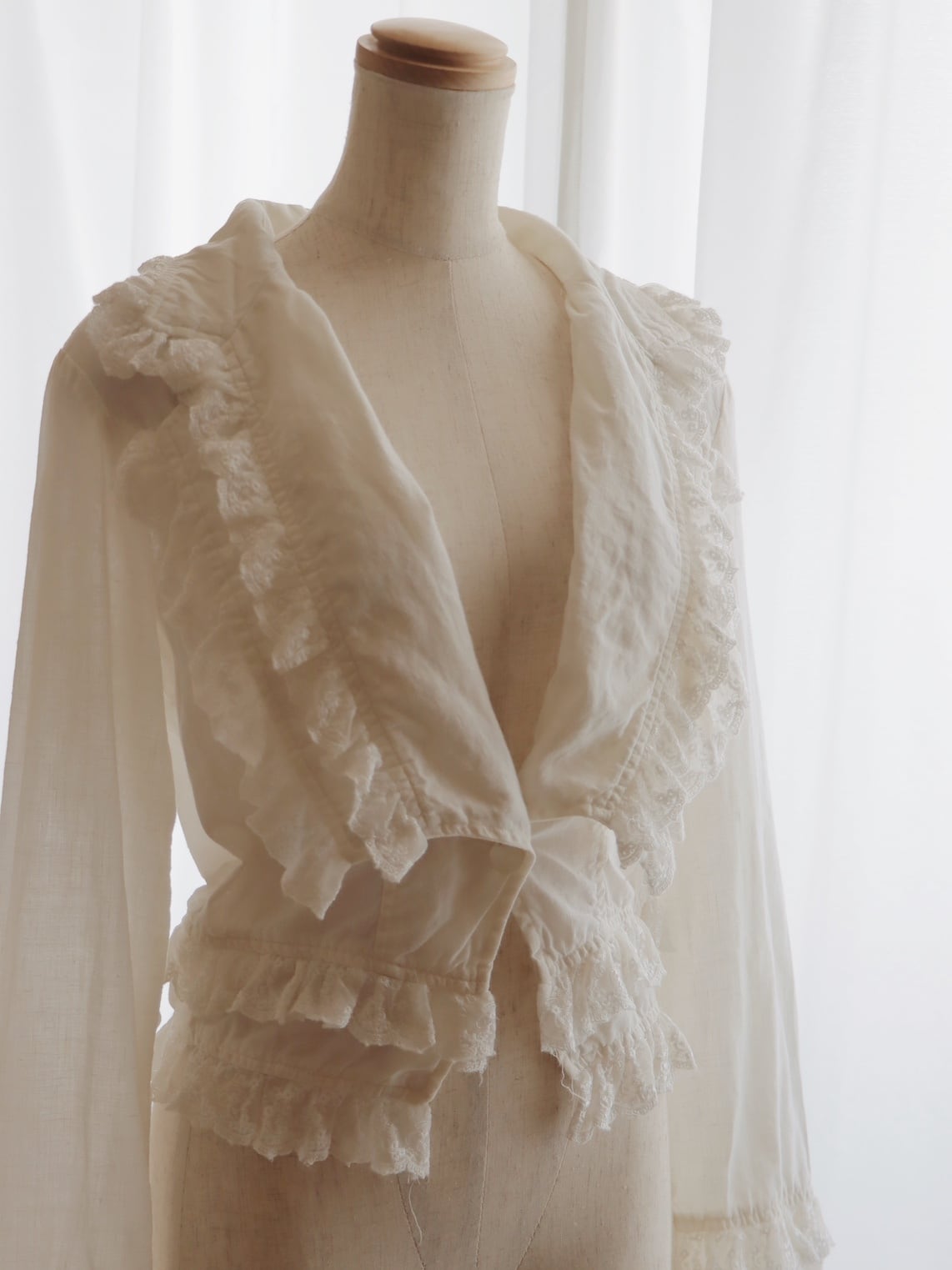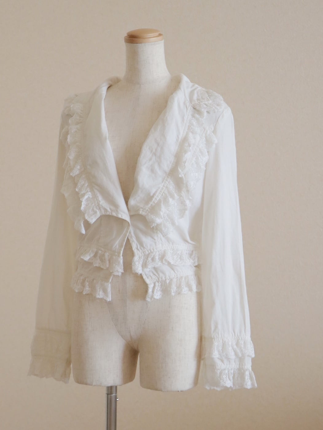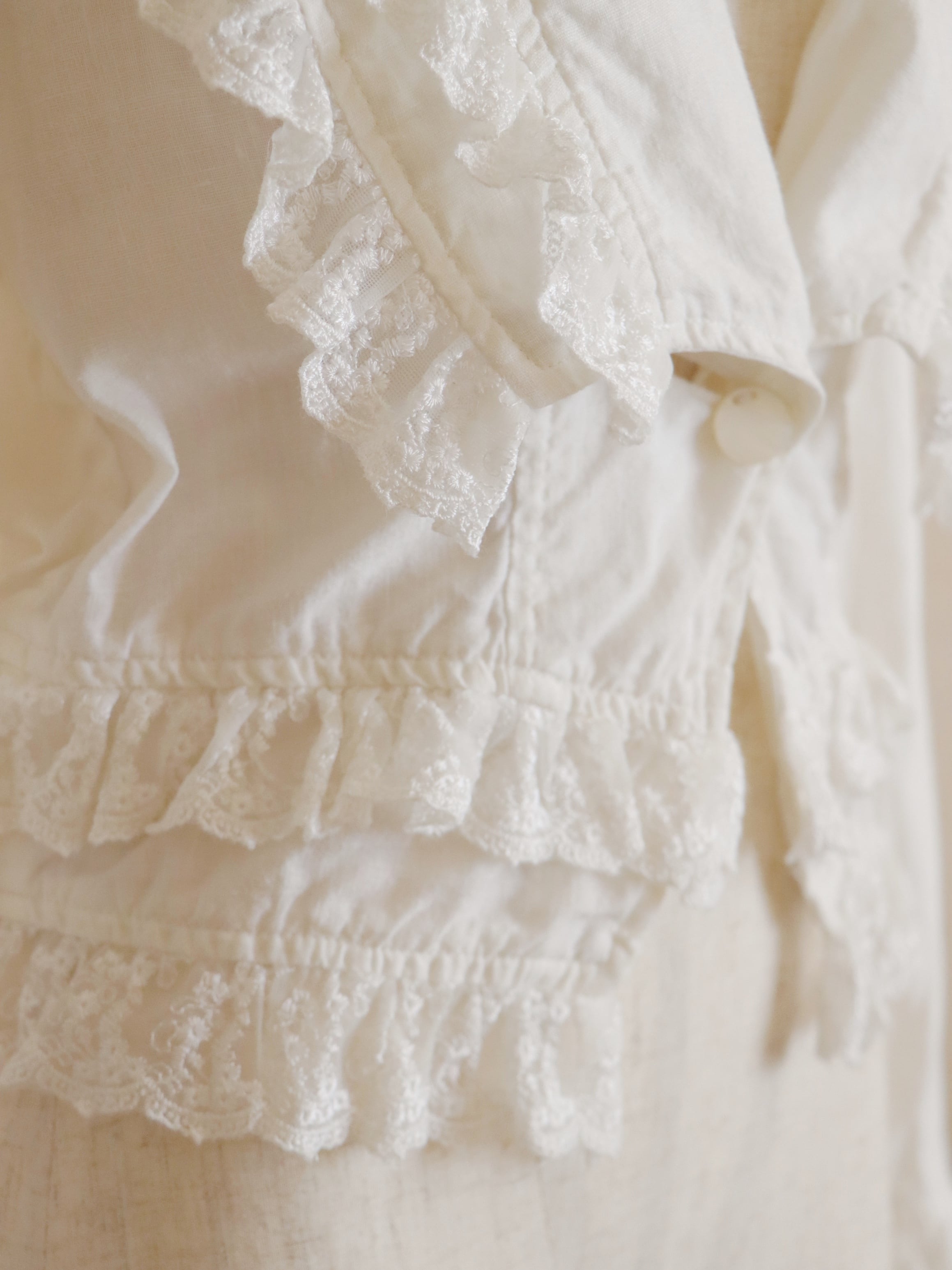 繊細なレースを贅沢に施したナチュラルリネンジャケット。