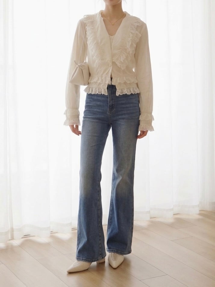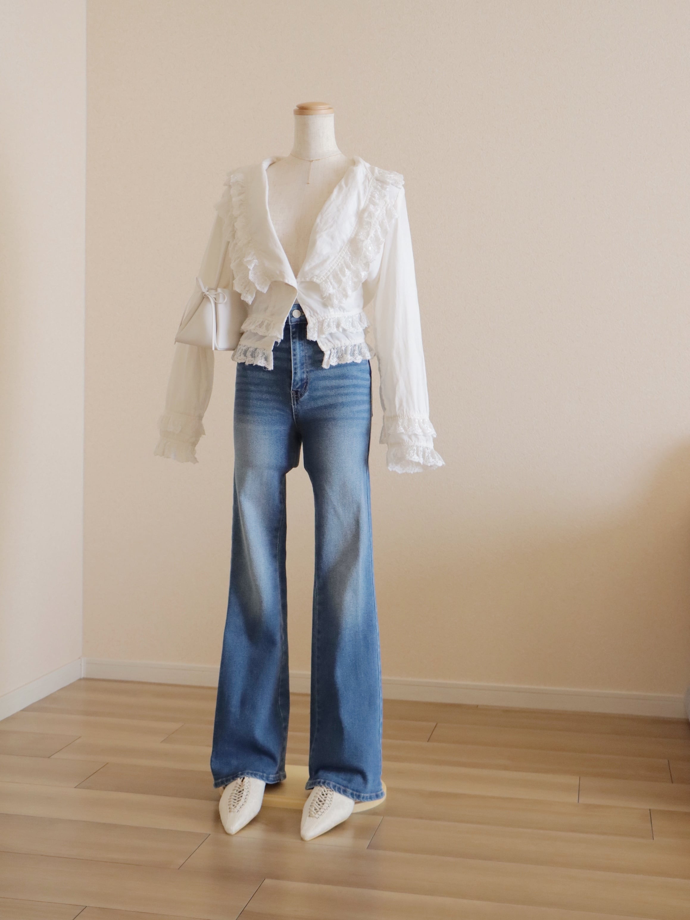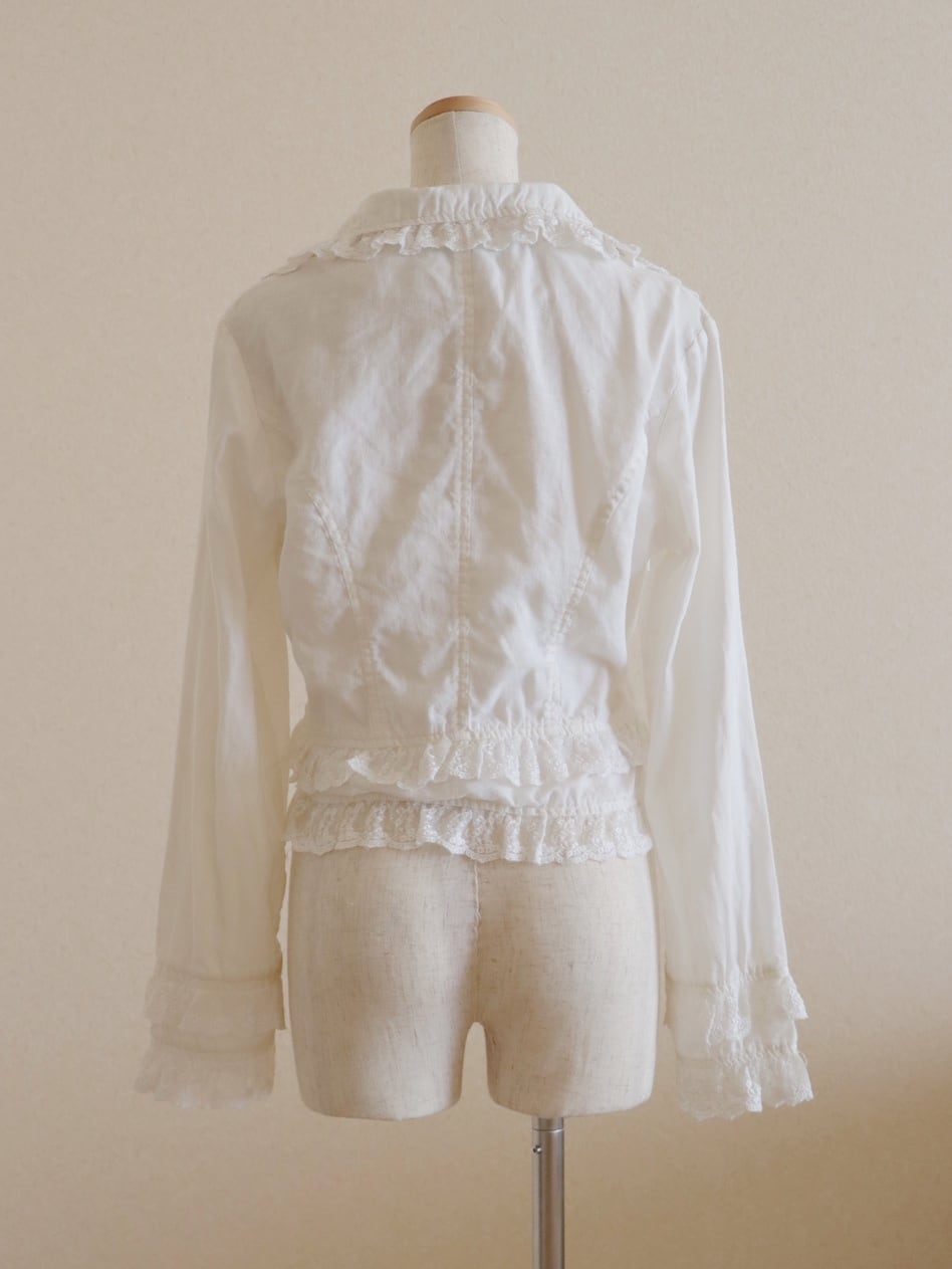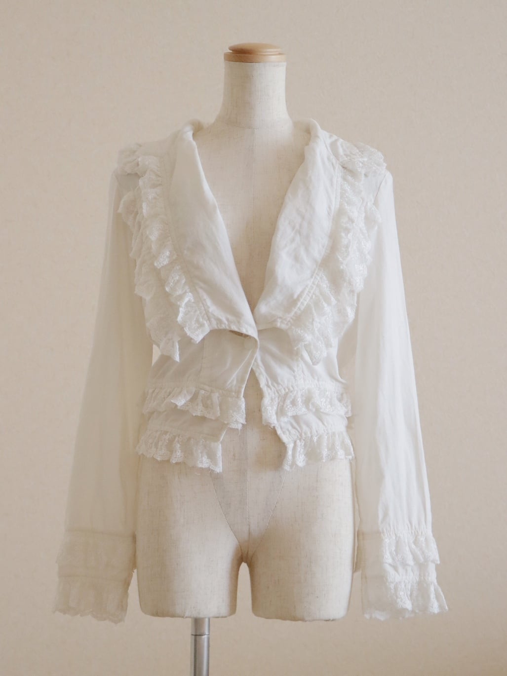 繊細なレースを贅沢に施したナチュラルリネンジャケット。