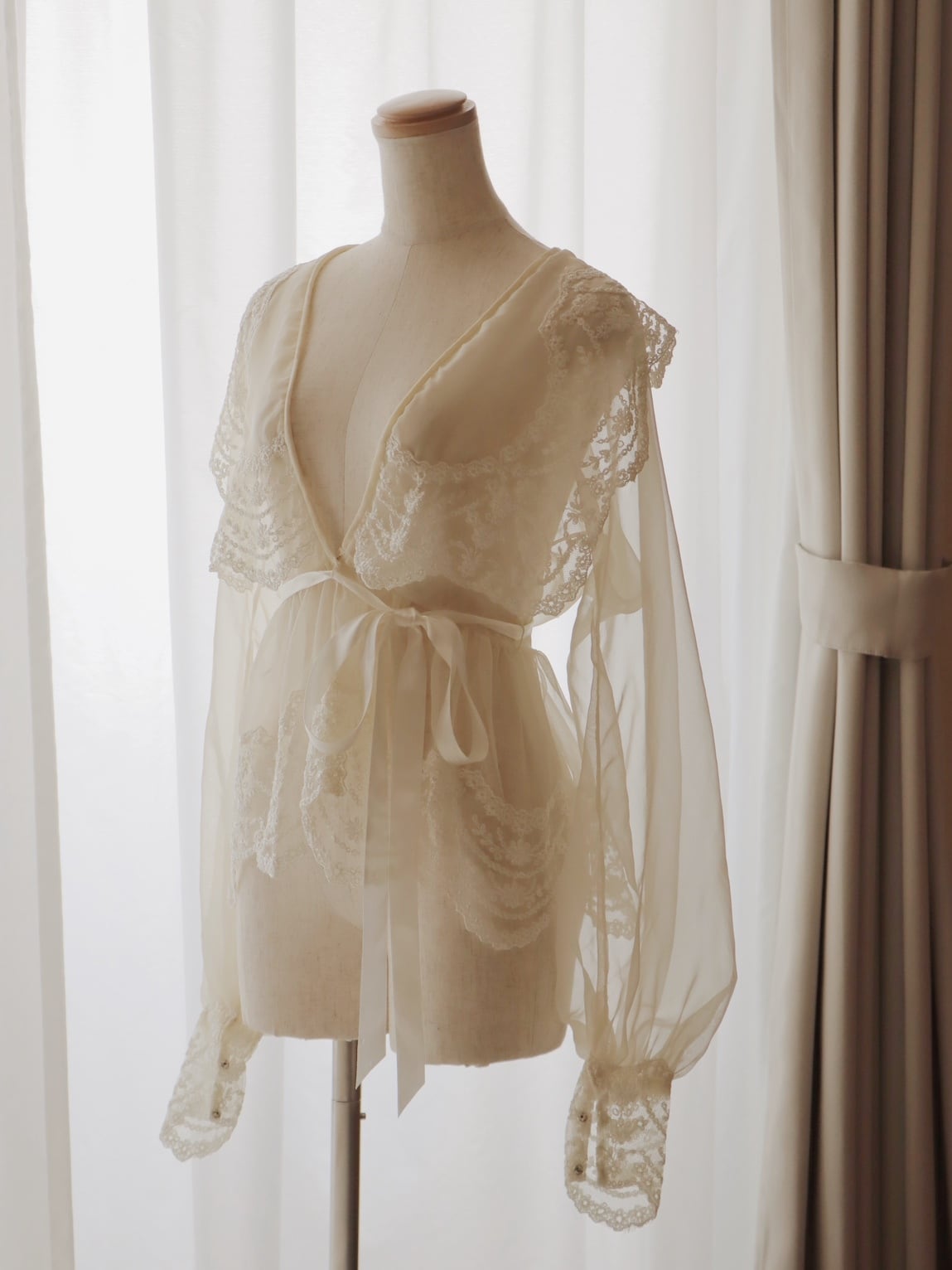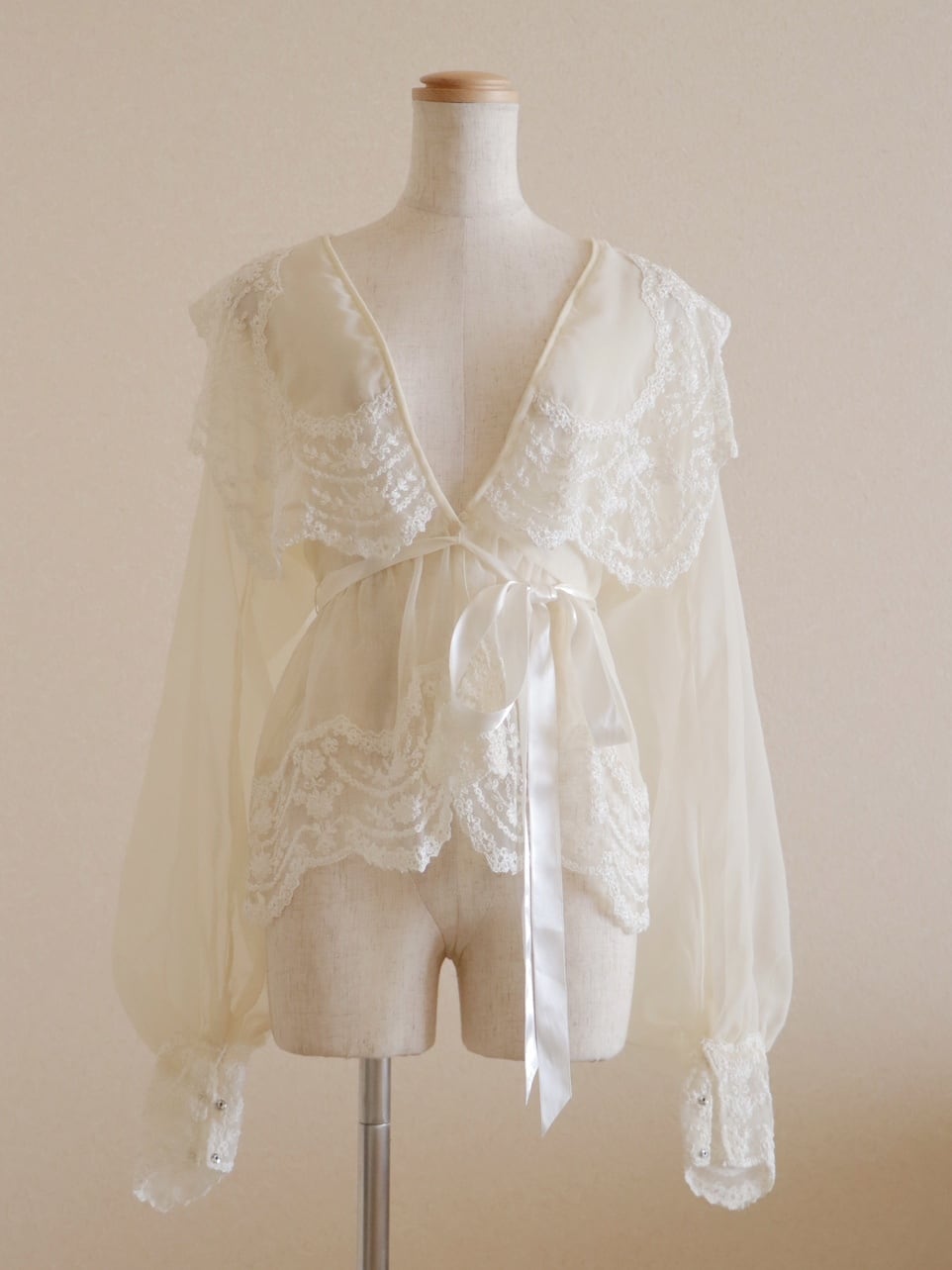 (襟と裾のレースは、レース本来の軽さを出す為に敢えて裏打ちはされておりません)