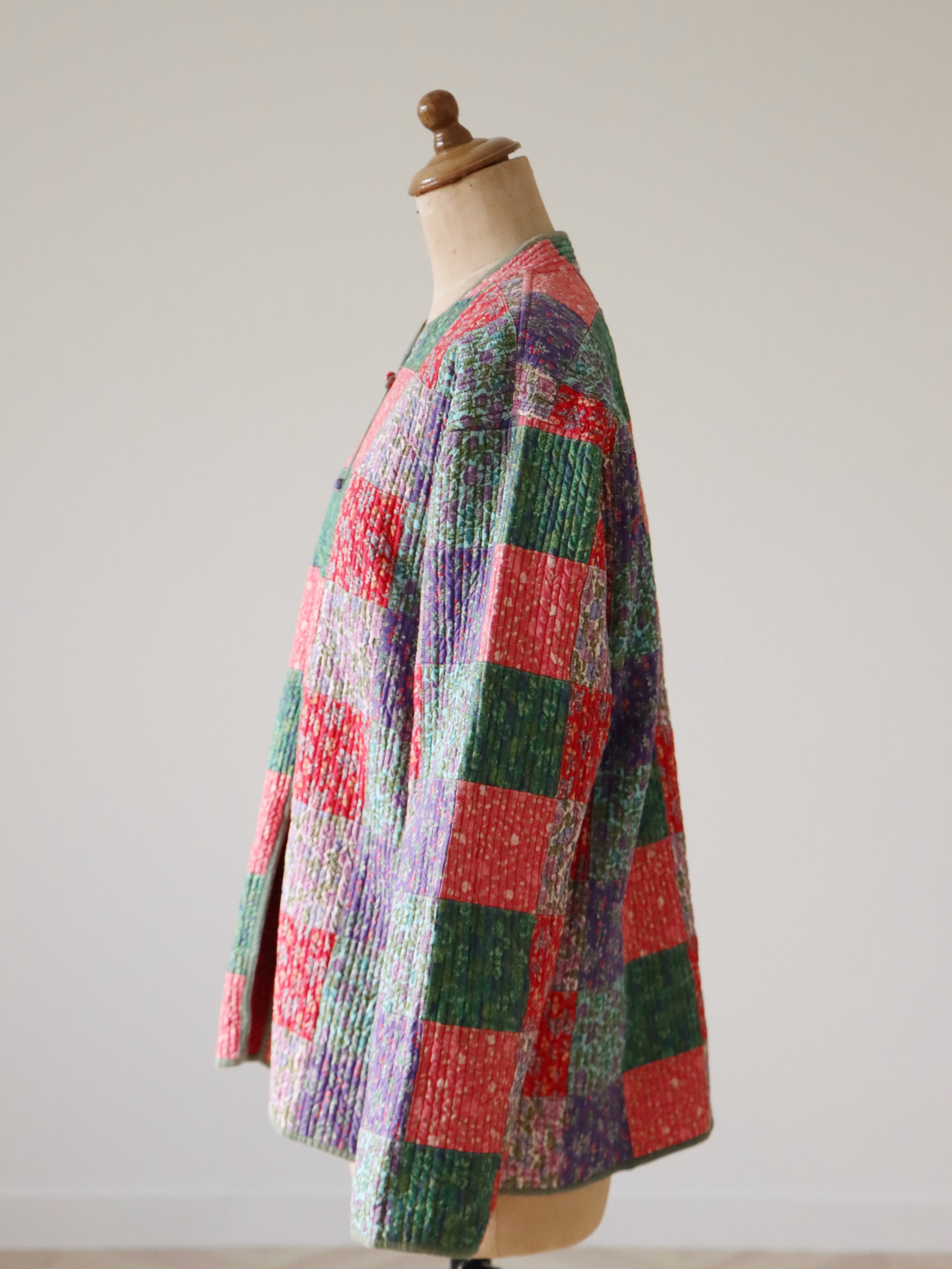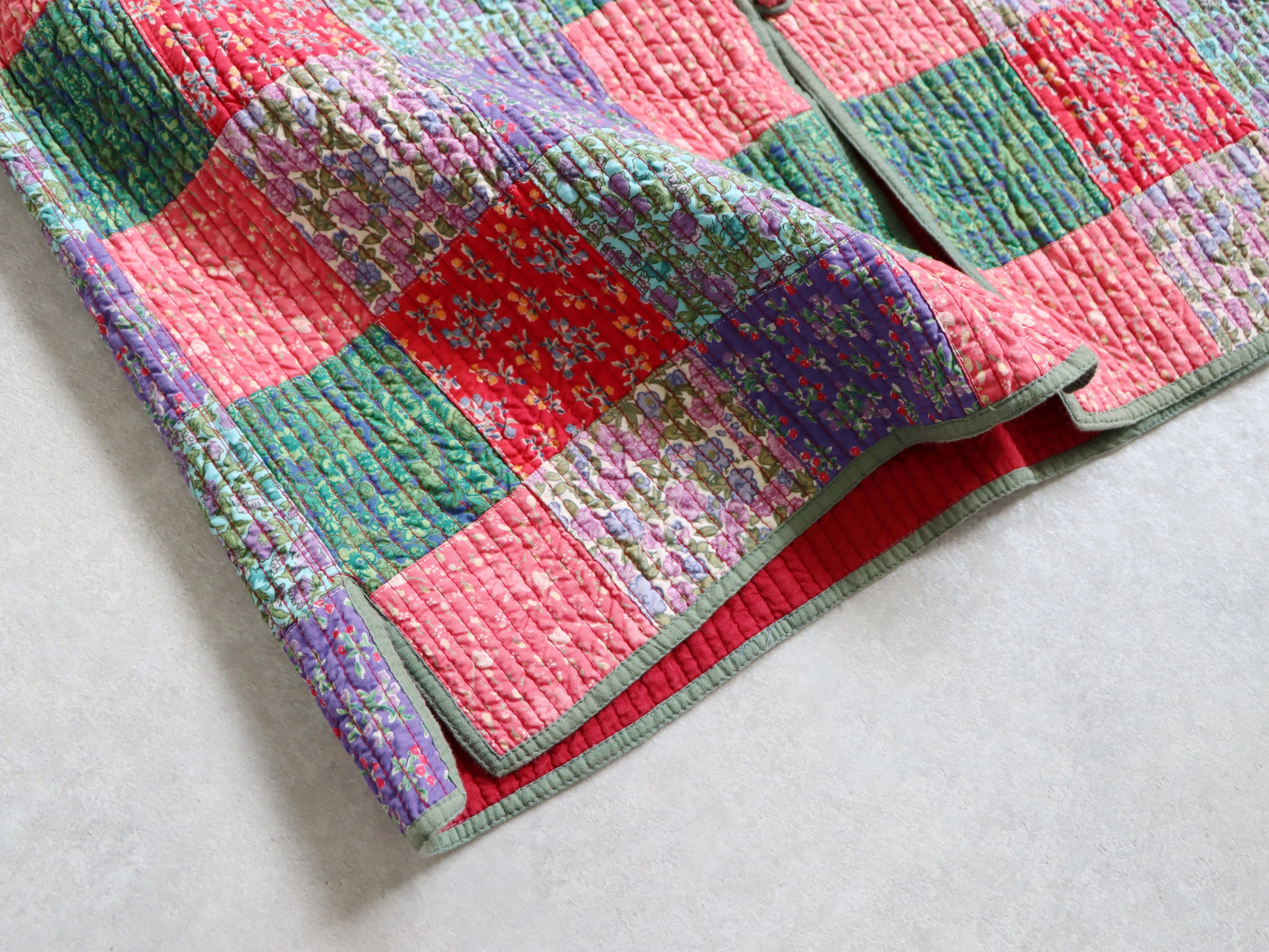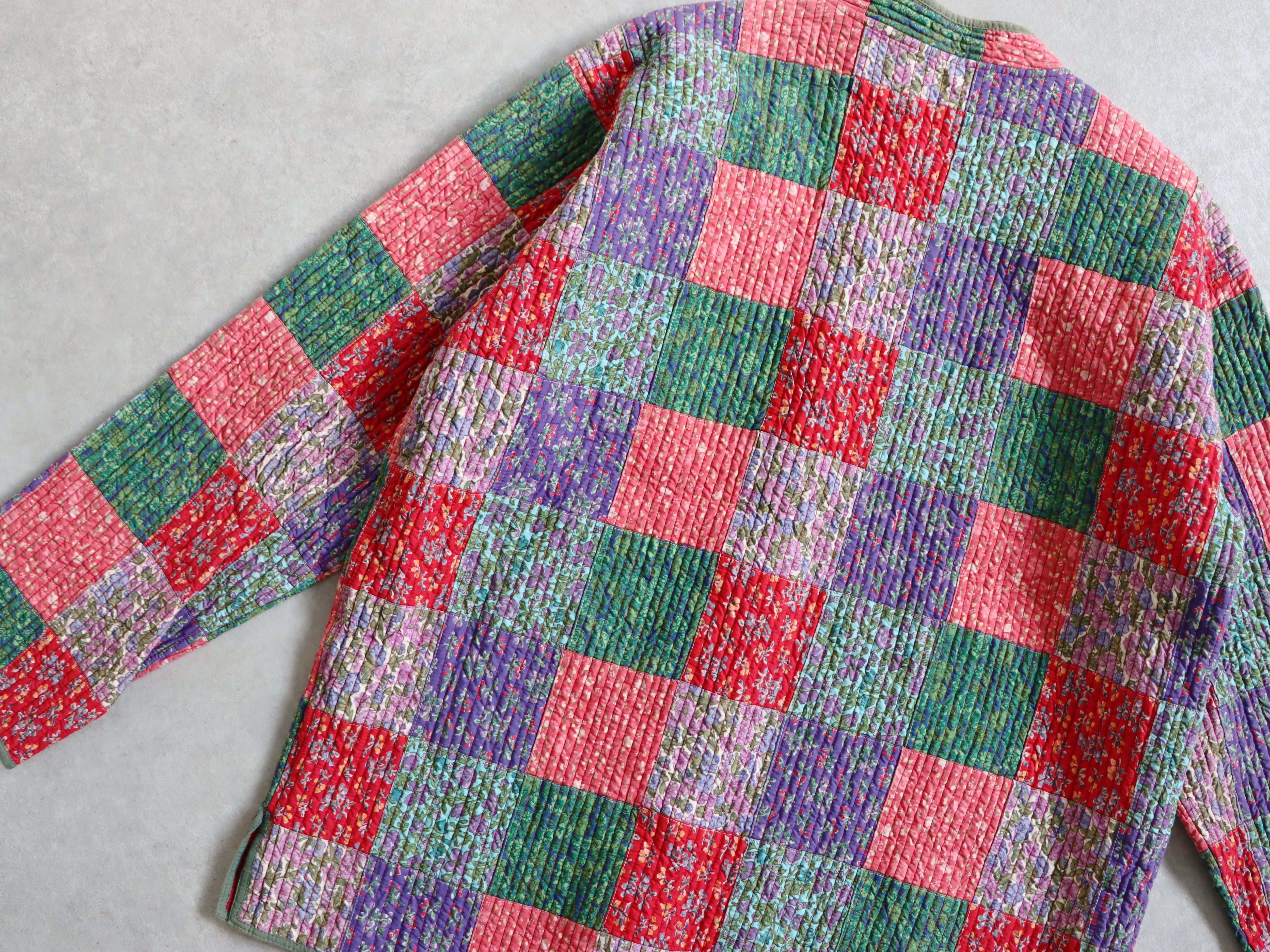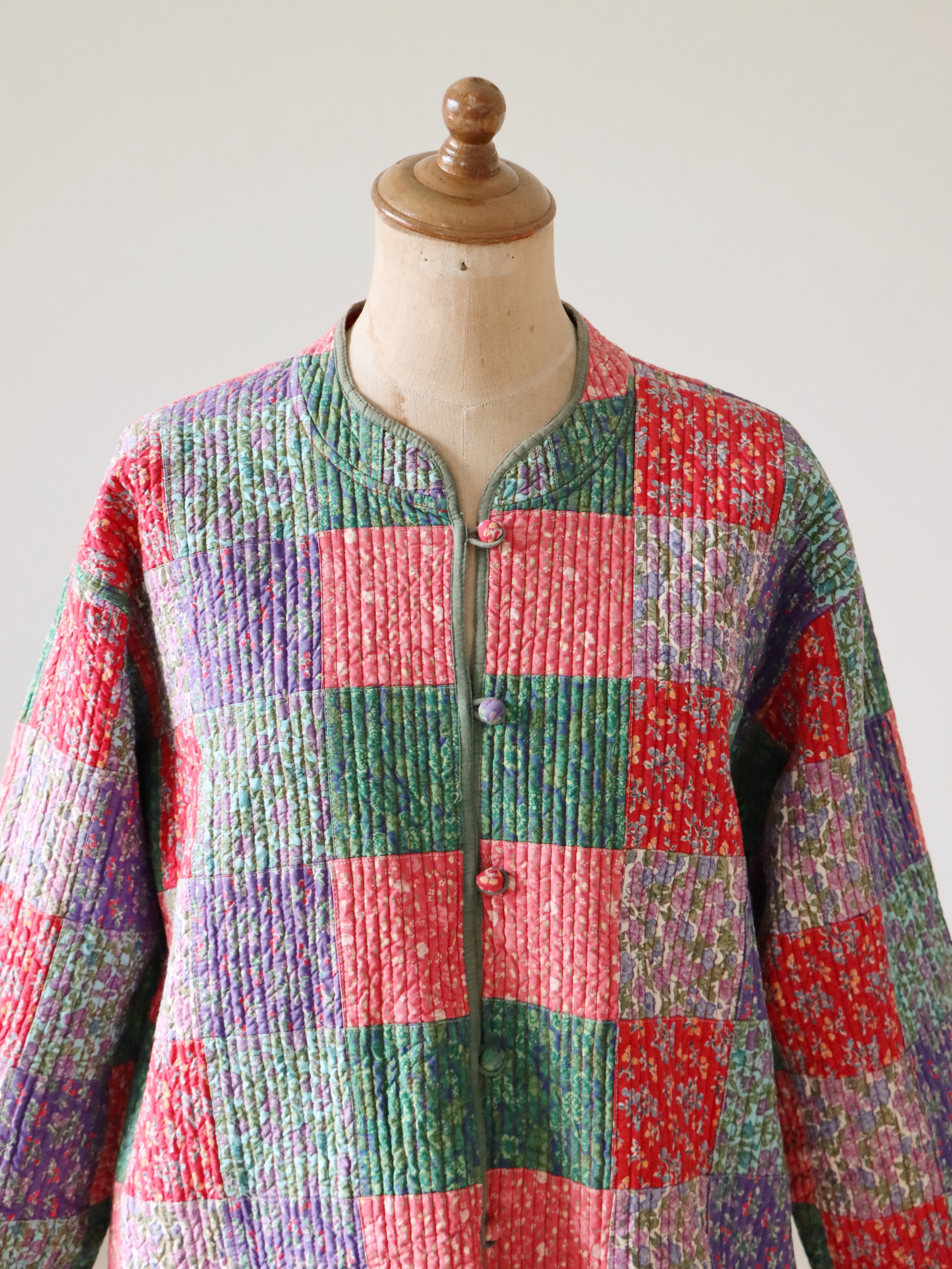 フラワーパターンの生地を贅沢にパッチワークした、70sキルティングジャケットです。
