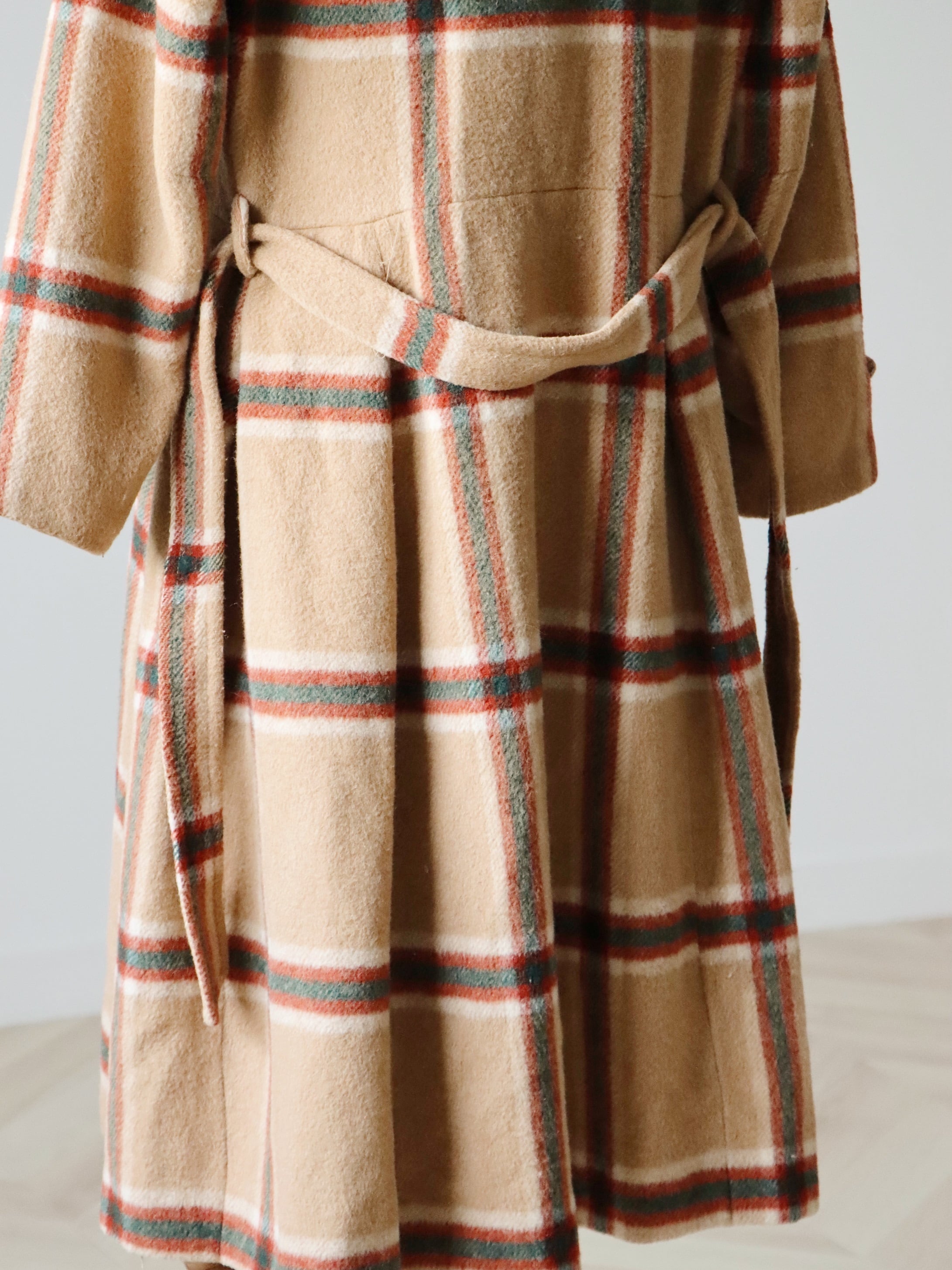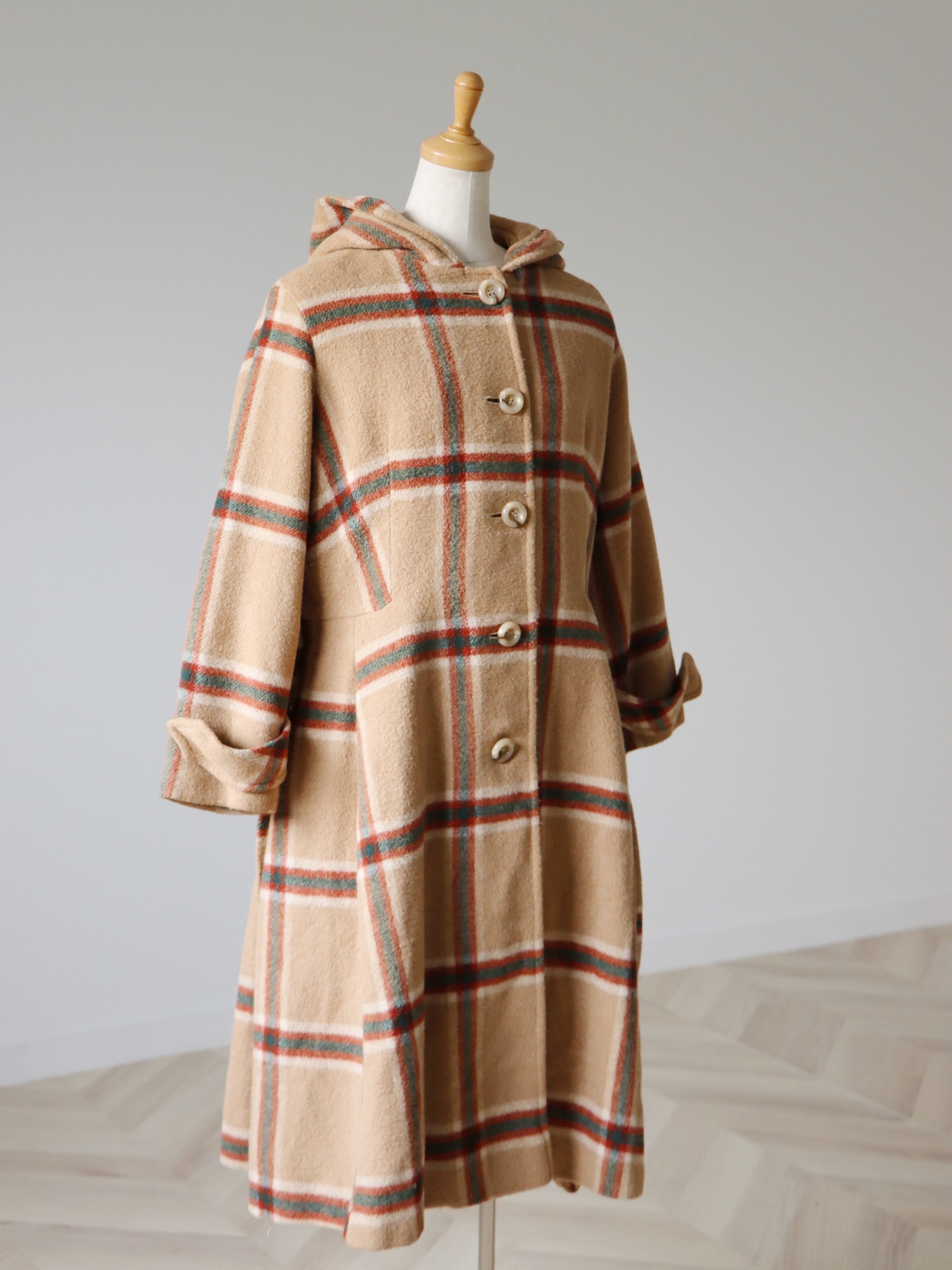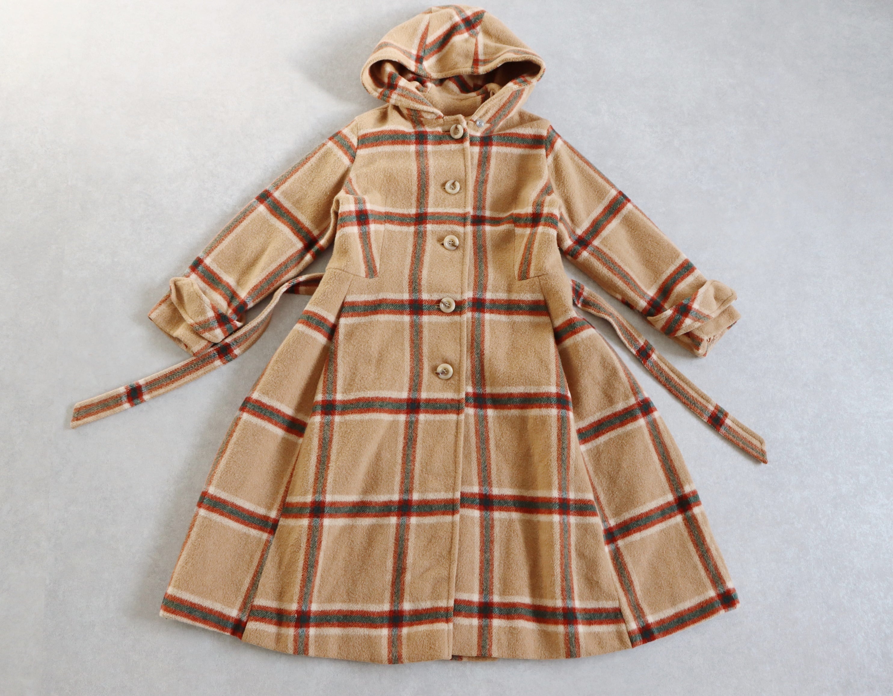 70s vintage tuck flare design plaid hoodie coat