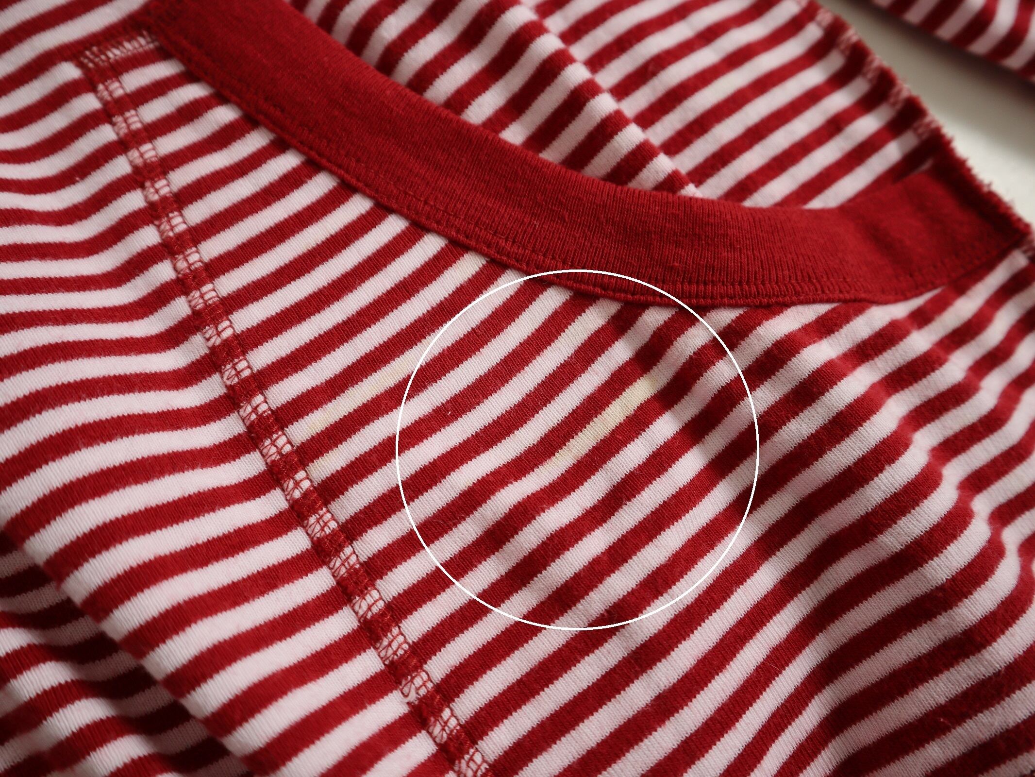 なるべく記載しておりますが、着用に影響がなく目立たない場合は記載しない場合もございますのでご理解の程お願い致します。
