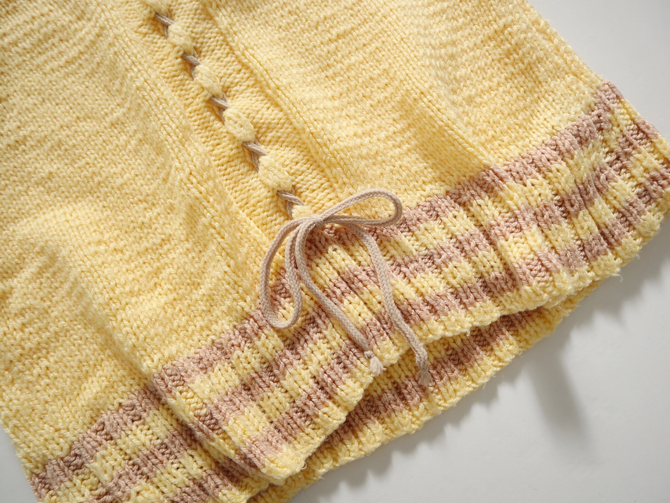 lace up detail yellow color knit tops.