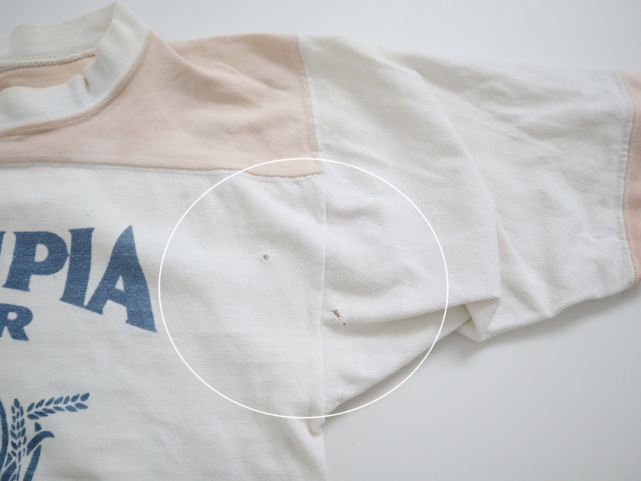 60s VELVA SHEEN olympia beer all cotton 染み込み football tee(●50)