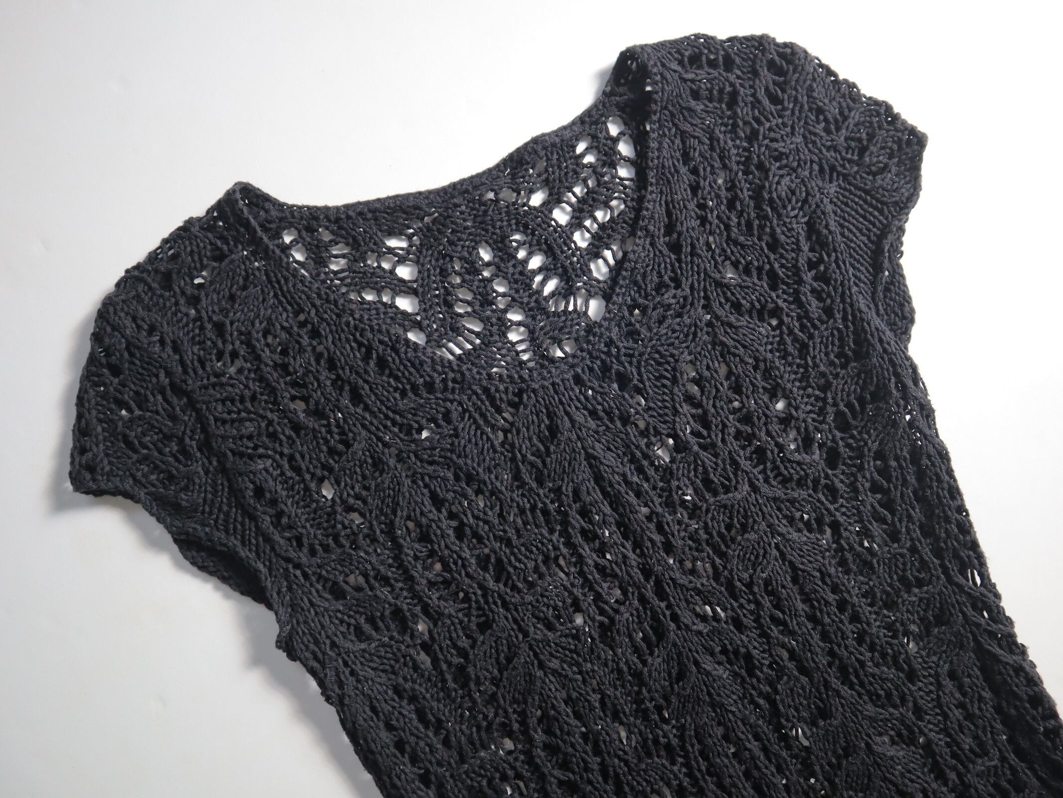 ●black crochet knit tops①