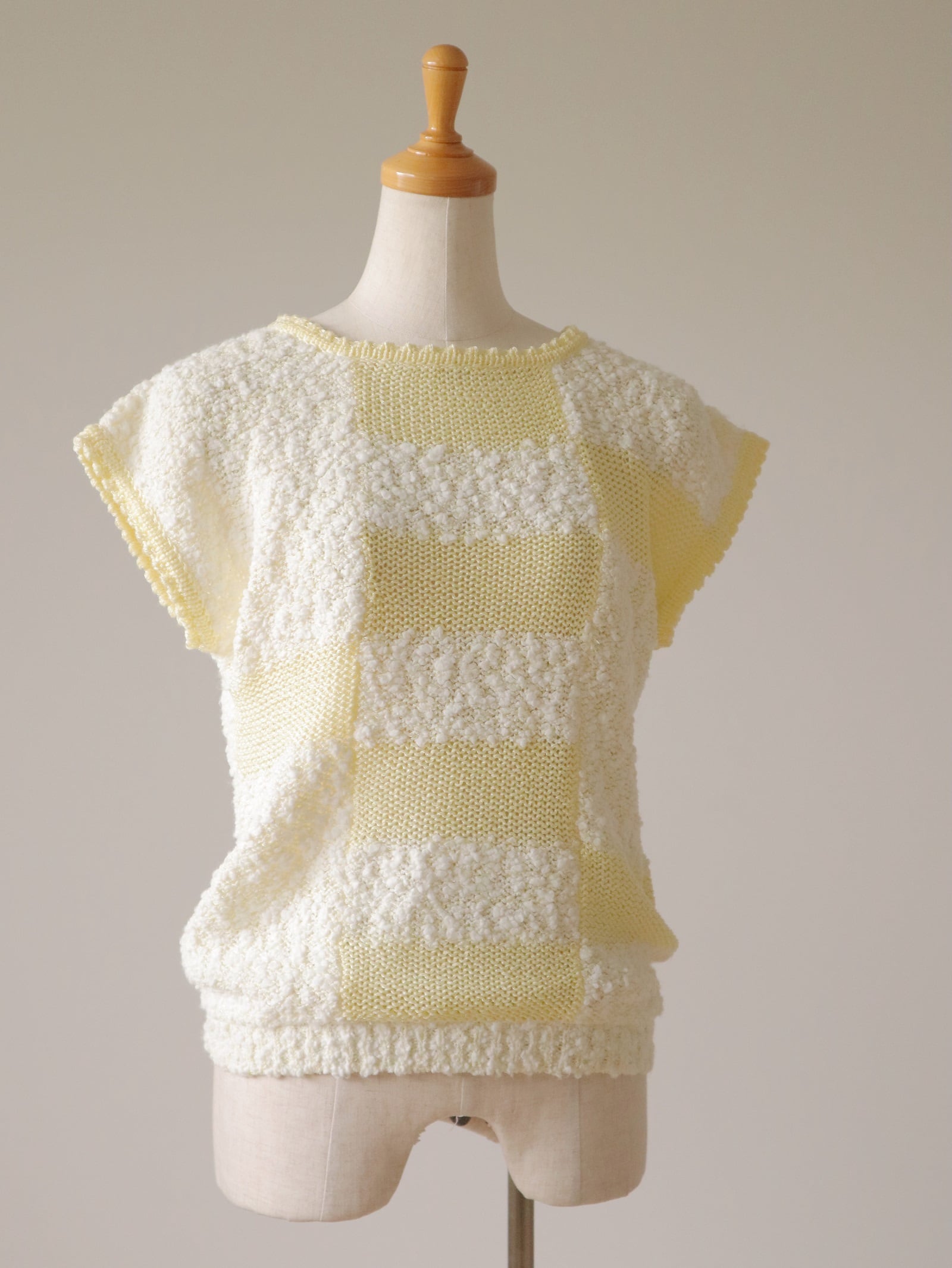 ●patchwork jacquard nep yarn knit top.