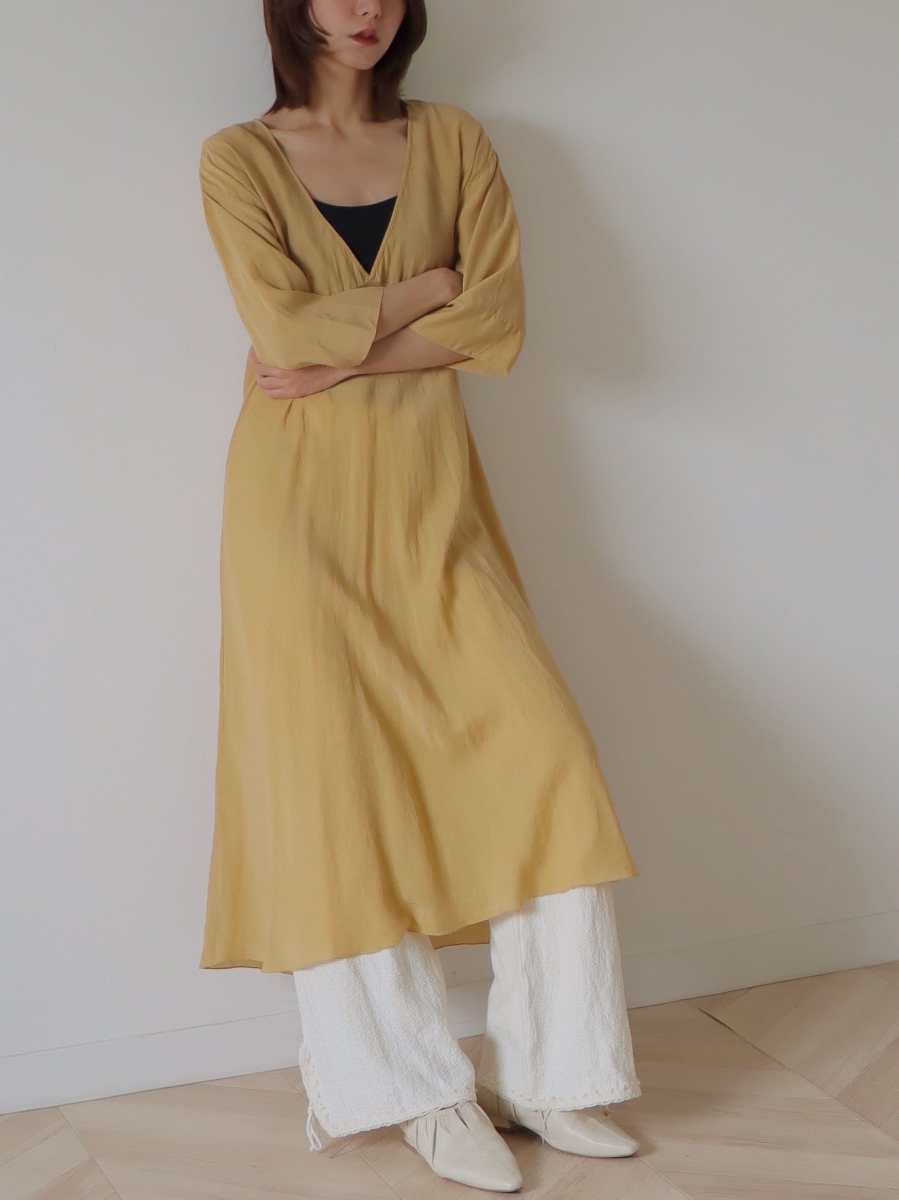 ●silk dropped shoulder airy dress.